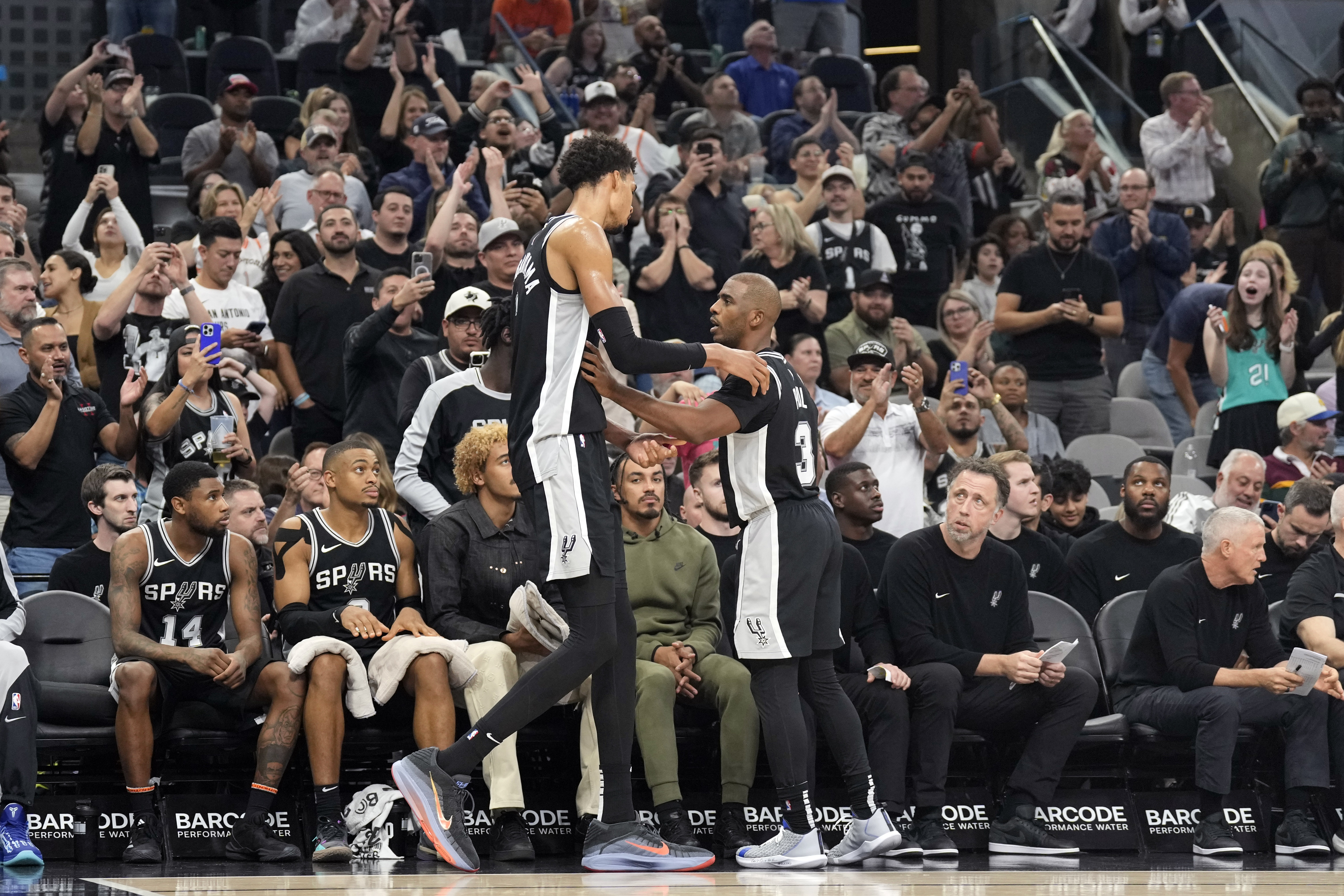 賽后,保羅接受了記者采訪。談到文班亞馬自拋自扣,他稱贊道:“太瘋狂了。我們在更衣室會討論這件事。我看到尚帕尼空切進去,我以為文班要給他傳呢。當我看到他自己砸板然后搶籃板的時候,我在想,‘該死,文班他在干什么呢?’我告訴你,幾乎每天晚上他都會做一些事情,讓你覺得,‘該死,這就是為什么人們總是談論他。’”