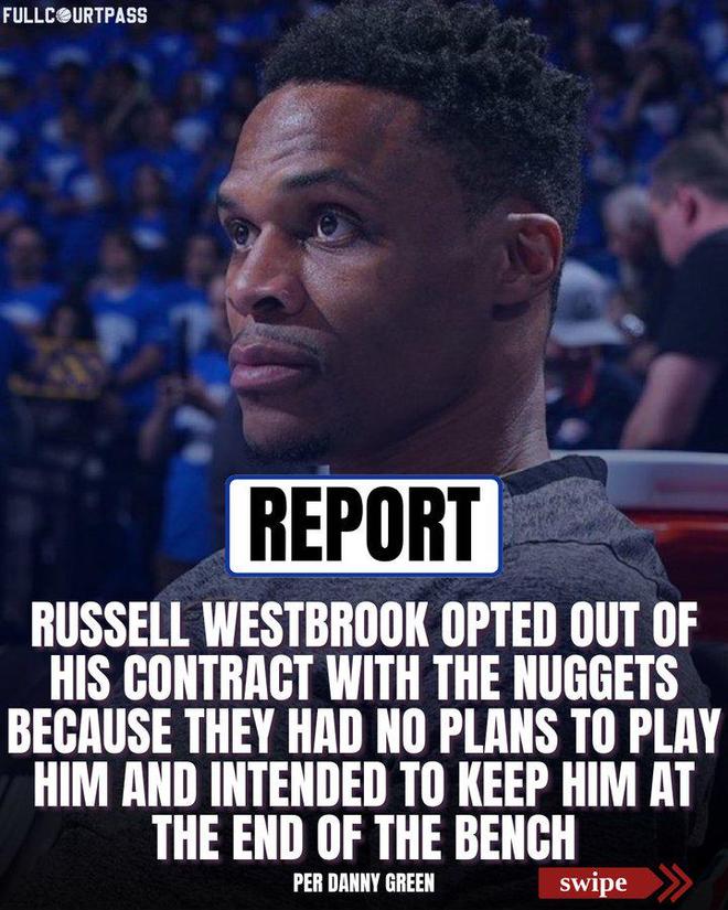 今年休賽期,威少拒絕執(zhí)行與掘金的下賽季價值350萬的球員選項,成為了一名自由球員,目前仍舊沒有找到下家。