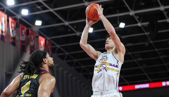 上一場對陣馬刺,哪怕對方有文班亞馬,陳國豪打的依然毫無懼色,三分、補籃,打得虎虎有聲,成為廣州本土球員中唯一一個得分上雙的球員。